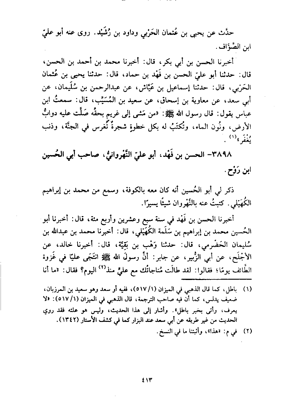 3898 - الْحَسَن بن فهد أَبُو عَلِيّ النهرواني صاحب أَبِي الْحُسَيْن بن روح ذكر لي أَبُو الْحُسَيْنِ أَنَّهُ كَانَ معه بالكوفة، وسمع من مُحَمَّد بن إِبْرَاهِيم الكهيلي.