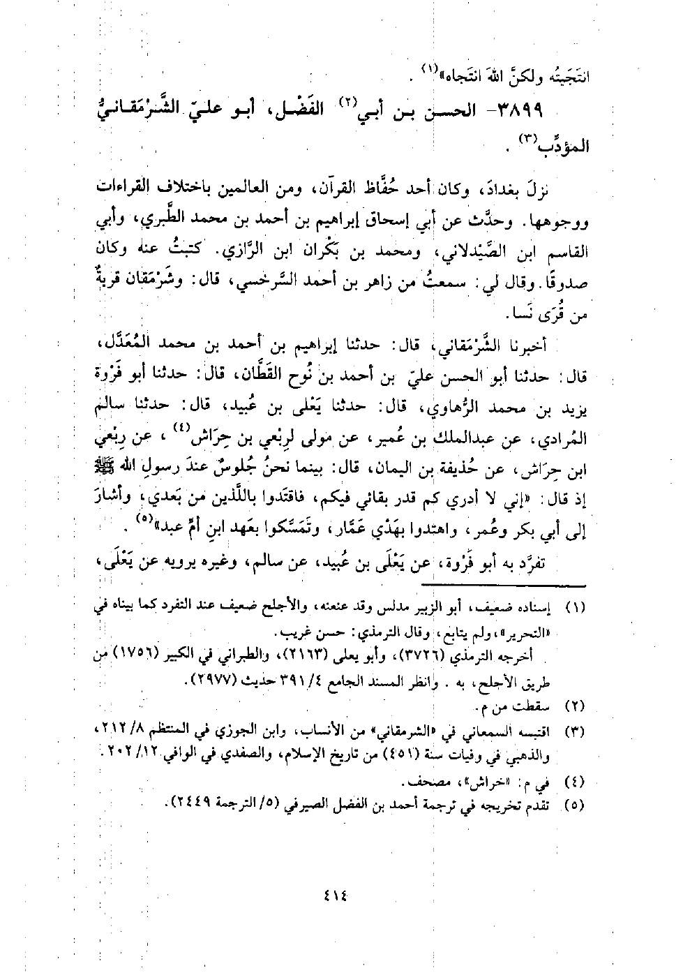 3899 - الْحَسَن بن أَبِي الفضل أَبُو عَلِيّ الشرمقاني المؤدب نزل بغداد، وكان أحد حفاظ القرآن، ومن العالمين باختلاف القراءات ووجوهها.