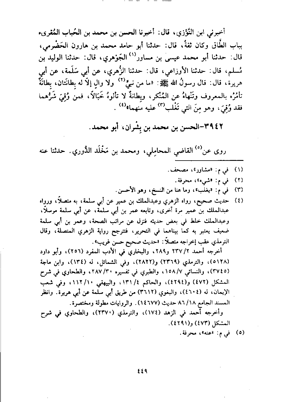 3942 - الْحَسَن بن مُحَمَّدِ بْنِ بشران أَبُو مُحَمَّد روى عَنِ الْقَاضِي المحاملي، ومحمد بن مخلد الدوري.