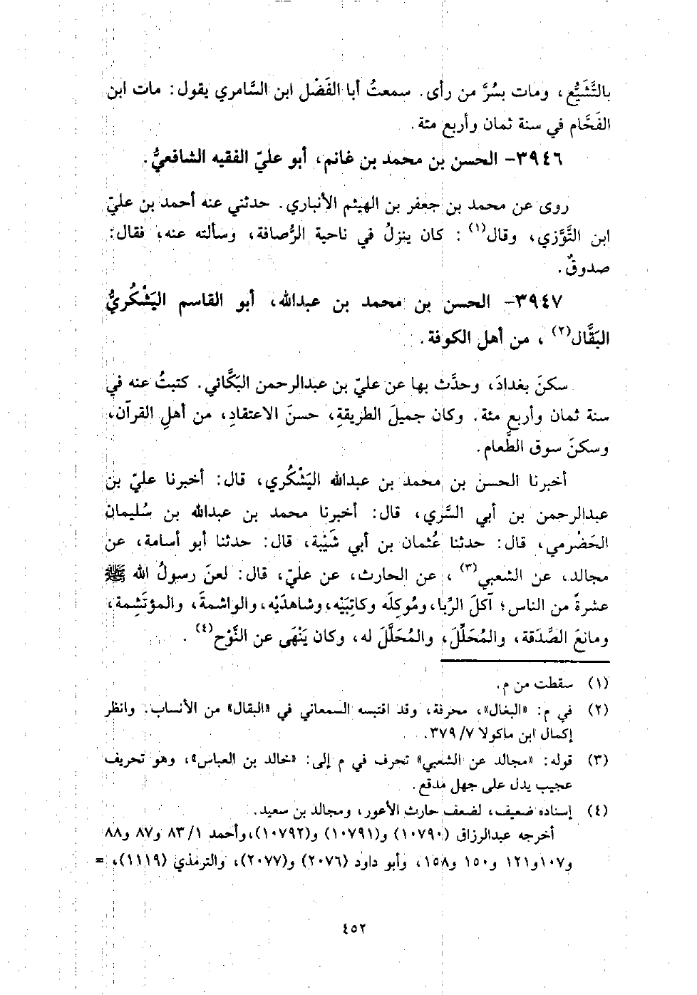 3946 - الْحَسَن بن مُحَمَّدِ بْنِ غانم أَبُو عَلِيّ الفقيه الشافعي روى عَنْ مُحَمَّد بن جَعْفَر بن الهيثم الأنباري.