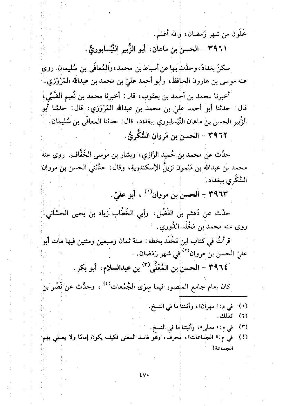 3962 - الْحَسَن بن مروان السكري حدث عَنْ مُحَمَّد بن حميد الرَّازِيّ، وبشار بن مُوسَى الخفاف.