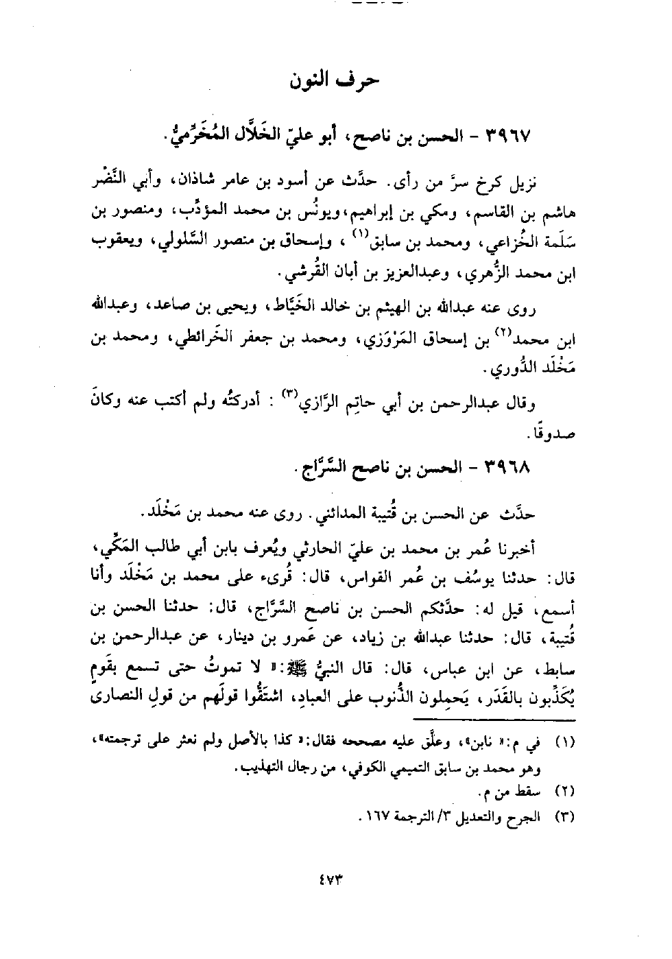 3967 - الْحَسَن بن ناصح أَبُو عَلِيّ الخلال المخرمي نزيل كرخ سر من رأى.