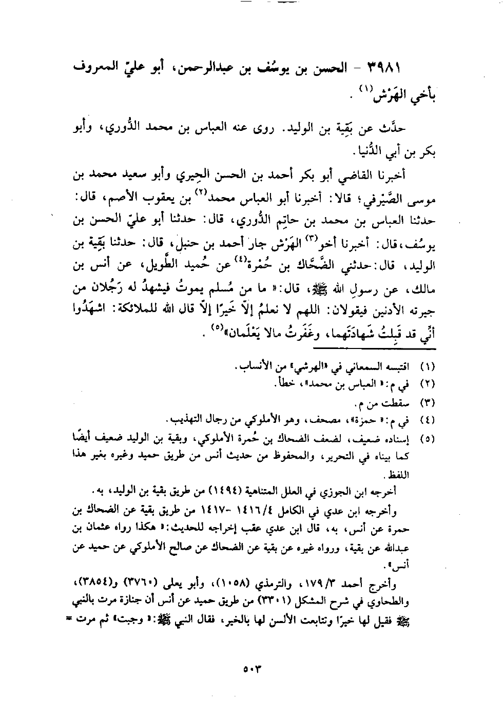 3981 - الْحَسَن بن يوسف بن عَبْد الرَّحْمَنِ أَبُو عَلِيّ المعروف بأخي الهرش حدث عَنْ بقية بن الوليد.