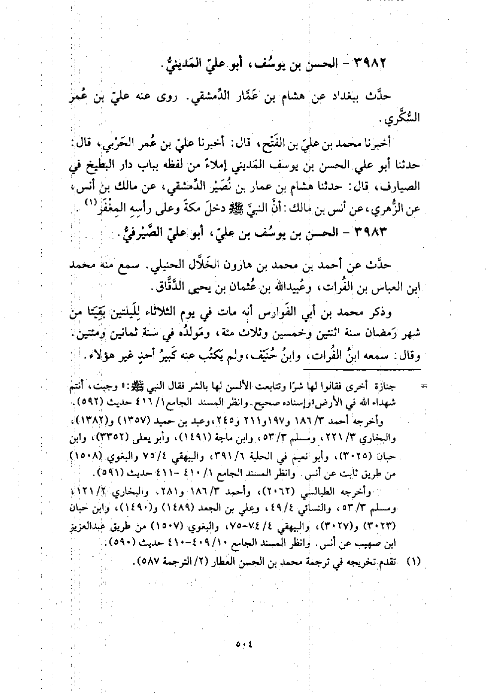 3982 - الْحَسَن بن يوسف أَبُو عَلِيّ المديني حدث ببغداد عَنْ هشام بن عمار الدمشقي.