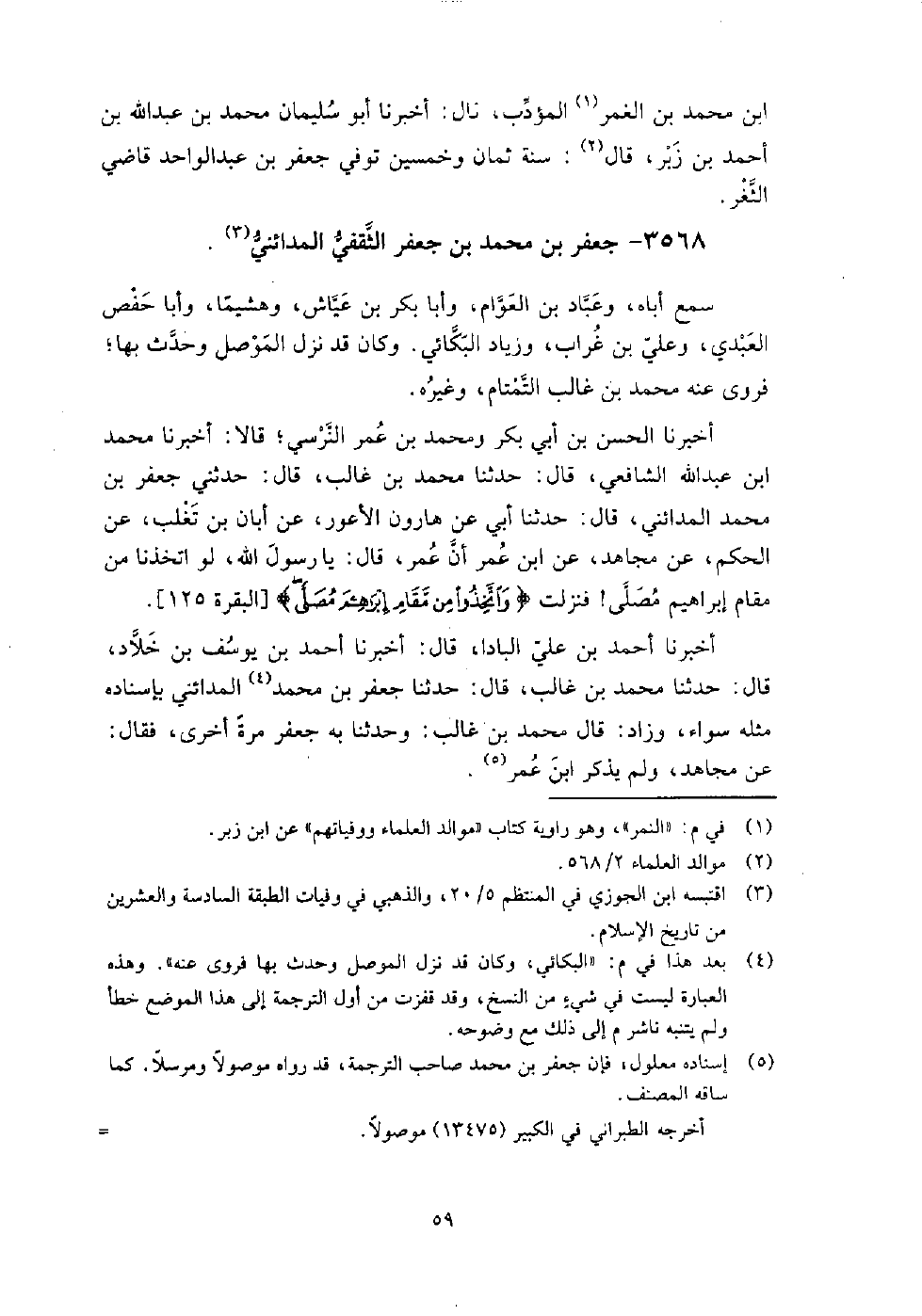3568 - جعفر بن مُحَمَّدِ بْنِ جعفر الثقفي المدائني سمع أباه، وعباد بن العوام، وأبا بكر بن عياش، وهشيما، وأبا حفص العبدي، وعلي بن غراب، وزياد البكائي.