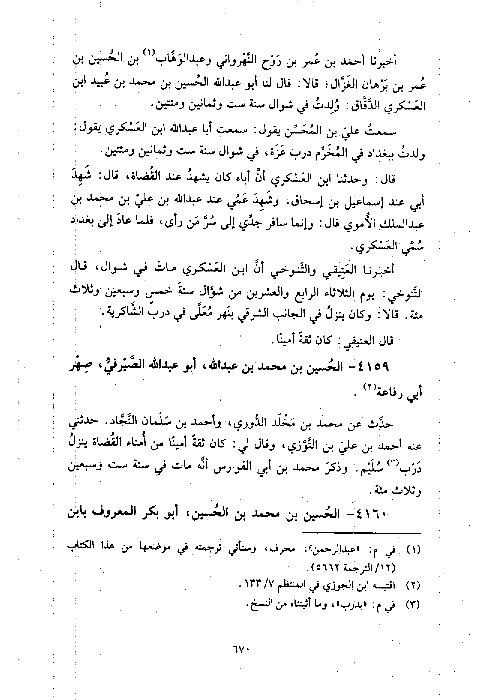 4159 - الْحُسَيْن بن مُحَمَّدِ بْنِ عَبْد اللَّهِ أَبُو عَبْدِ اللَّهِ الصيرفي صهر أَبِي رفاعة حدث عَنْ مُحَمَّد بن مخلد الدوري، وأحمد بن سلمان النجاد.