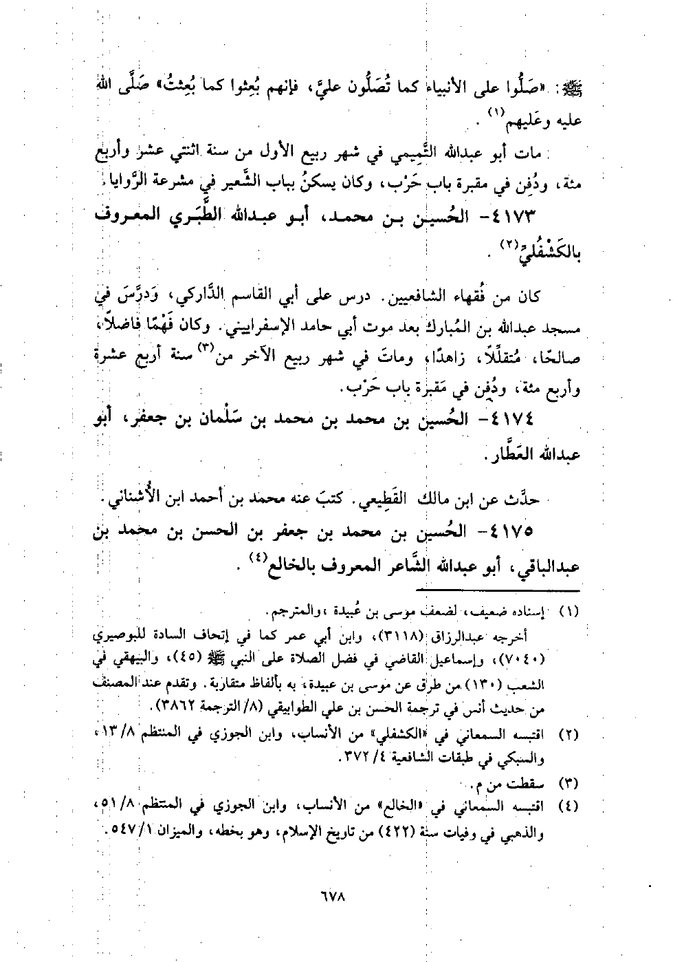 4173 - الْحُسَيْن بن مُحَمَّد أَبُو عَبْدِ اللَّهِ الطبري المعروف بالكشفلي كَانَ من فقهاء الشافعيين.