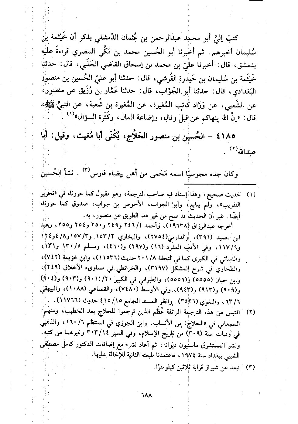 4185 - الْحُسَيْن بن مَنْصُور الحلاج يكنى أبا مغيث، وقيل: أبا عَبْد اللَّهِ
