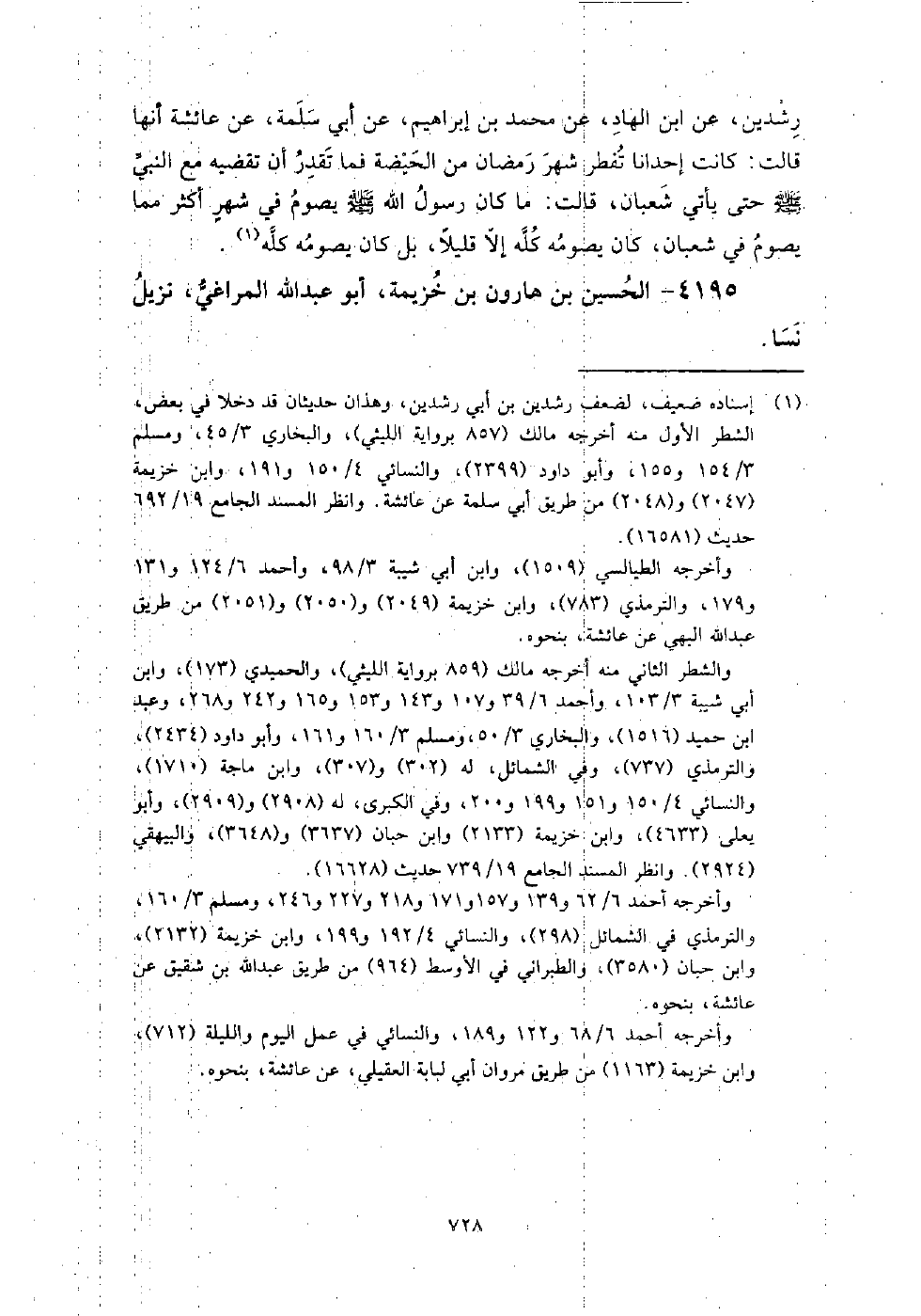 4195 - الْحُسَيْن بن هَارُون بن خزيمة أَبُو عَبْدِ اللَّهِ المراغي نزيل نسا ذكر أَبُو الْقَاسِمِ ابن الثلاج أَنَّهُ قدم بَغْدَاد للحج في سنة اثنتين وعشرين وثلاث مائة، وحدثهم عَنِ الْحَسَن بن سُفْيَان النسوي.
