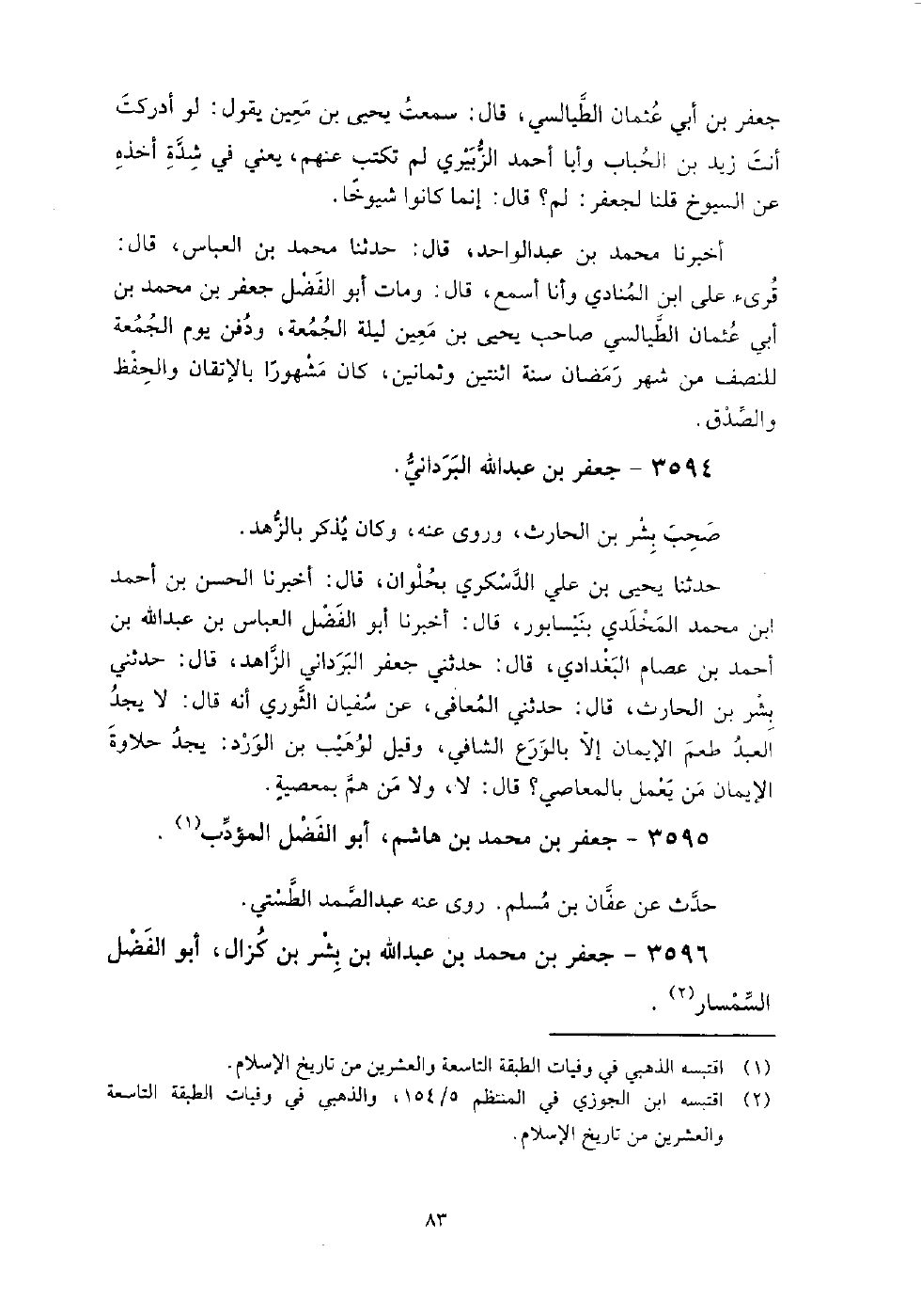 3595 - جَعْفَر بن مُحَمَّدِ بْنِ هاشم أَبُو الفضل المؤدب حدث عَنْ عفان بن مسلم.