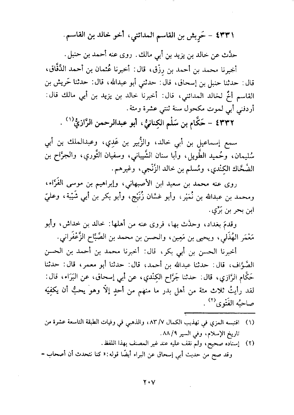 4332 - حكام بْن سلم الكناني أَبُو عَبْد الرَّحْمَنِ الرازي سمع إِسْمَاعِيل بْن أَبِي خَالِد، وَالزبير بْن عدي، وَعبد الملك بْن أَبِي سُلَيْمَان، وَحميد الطويل، وَأبا سنان الشيباني، وَسفيان الثَّوْرِيّ، وَالجراح بْن الضحاك الكندي، وَمسلم بْن خَالِد الزنجي، وَغيرهم.