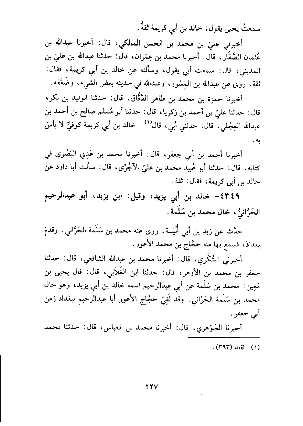 4349 - خَالِد بْن أَبِي يزيد وَقيل بْن يزيد أَبُو عَبْد الرحيم الحراني خال مُحَمَّد بْن سلمة حدث عَنْ زيد بْن أَبِي أنيسة.
