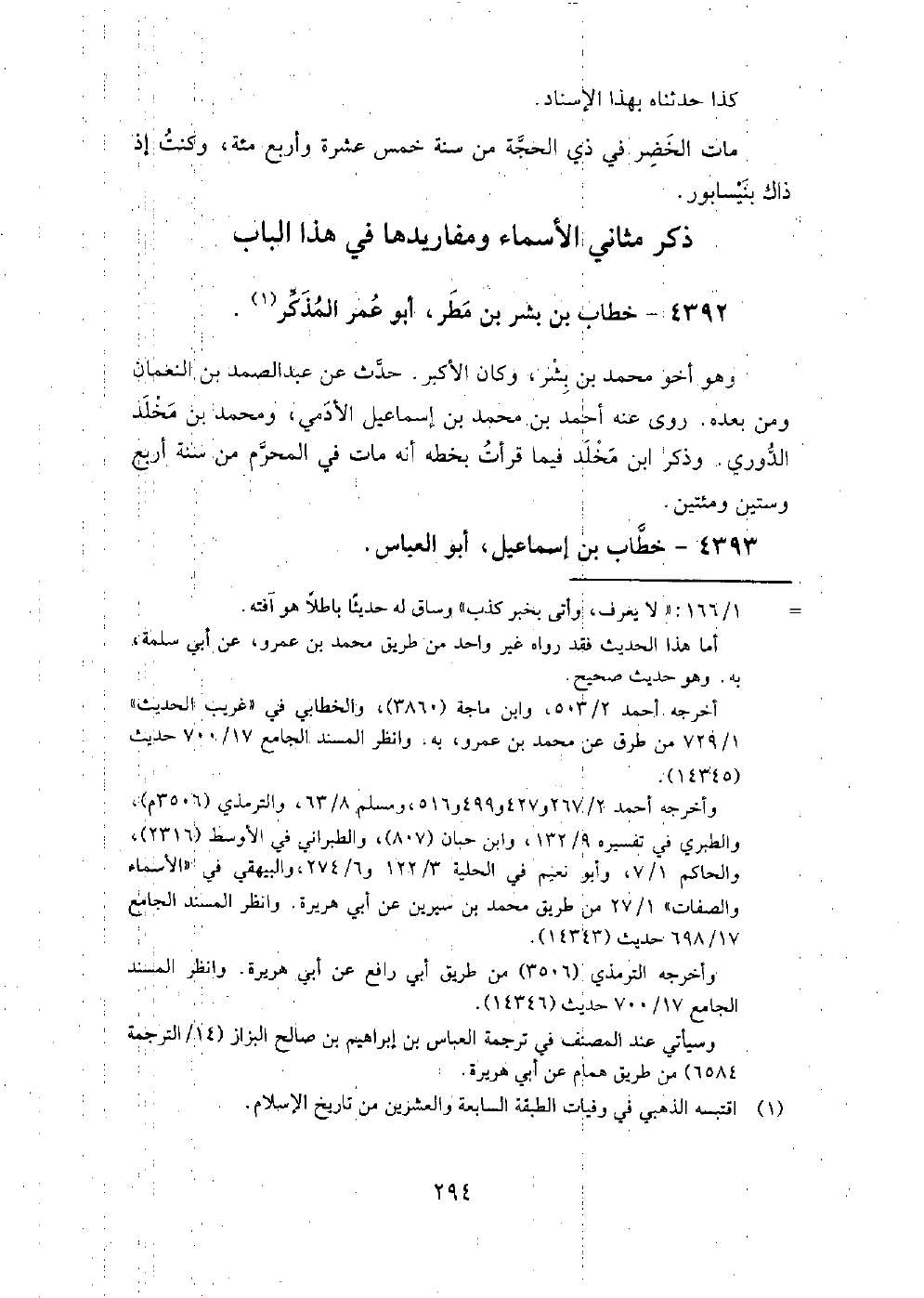 4393 - خطاب بْن إِسْمَاعِيل أَبُو الْعَبَّاس حدث عَنْ أَبِي بَكْر بْن أَبِي شيبة.