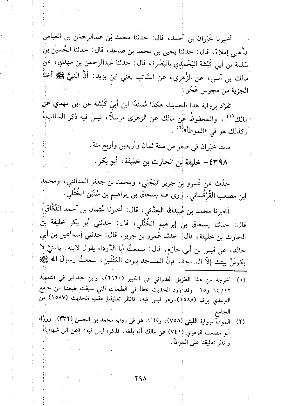 4398 - خليفة بْن الحارث بْن خليفة أَبُو بَكْر حدث عَنْ عَمْرو بْن جرير البجلي، وَمحمد بْن جَعْفَر المدائني، وَمحمد بْن مصعب القرقساني.
