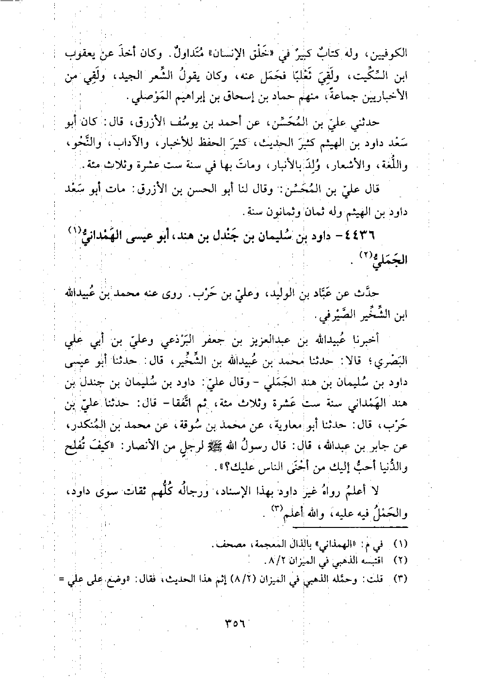 4436 - دَاوُد بْن سُلَيْمَان بْن جندل بْن هند أَبُو عيسى الهمداني الجملي حدث عَنْ عباد بْن الوليد، وَعلي بْن حرب.