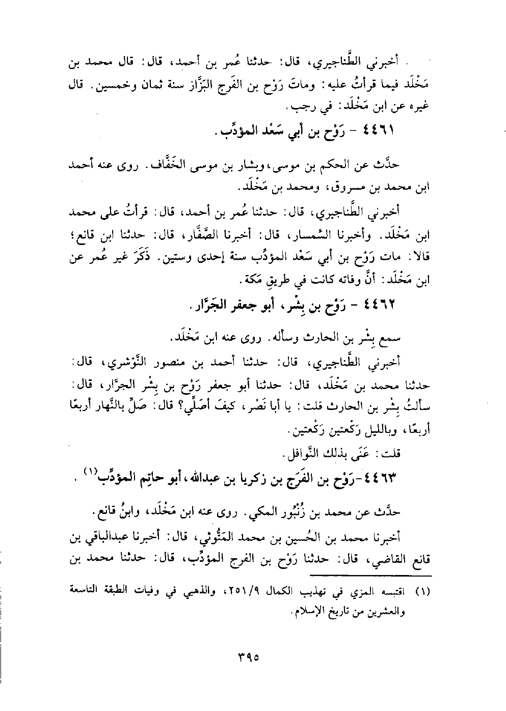 4461 - روح بْن أَبِي سَعْد المؤدب حدث عَنْ: الحكم بْن مُوسَى، وَبشار بْن مُوسَى الخفاف.