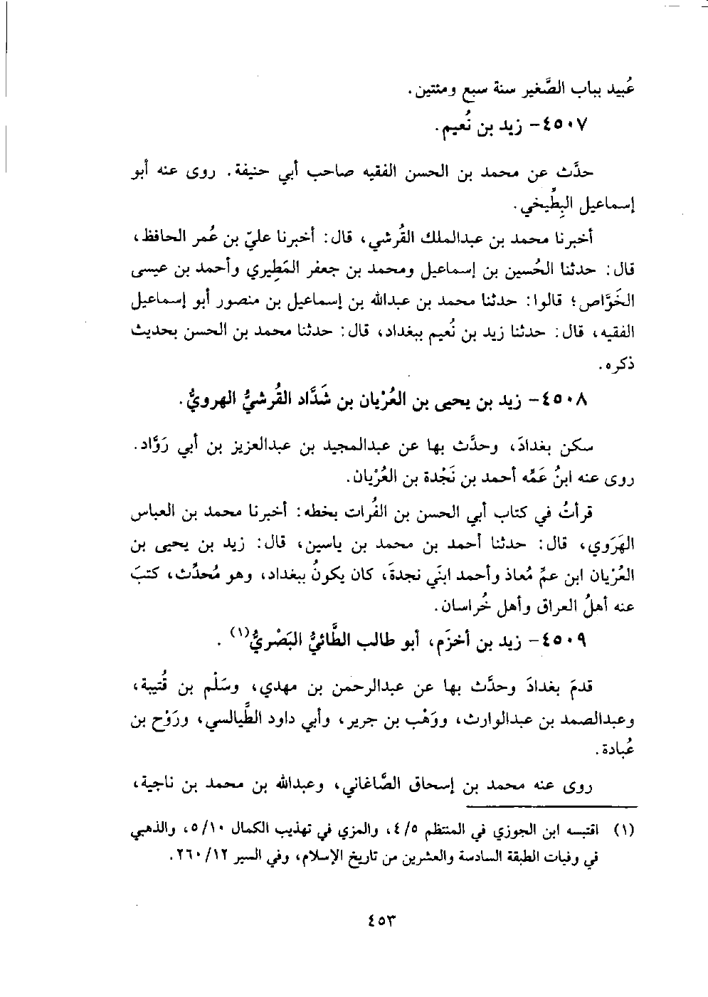 4507 - زيد بْن نعيم حدث عَنْ مُحَمَّد بْن الْحَسَن الفقيه صاحب أَبِي حنيفة، روى عنه أَبُو إِسْمَاعِيل البطيخي.