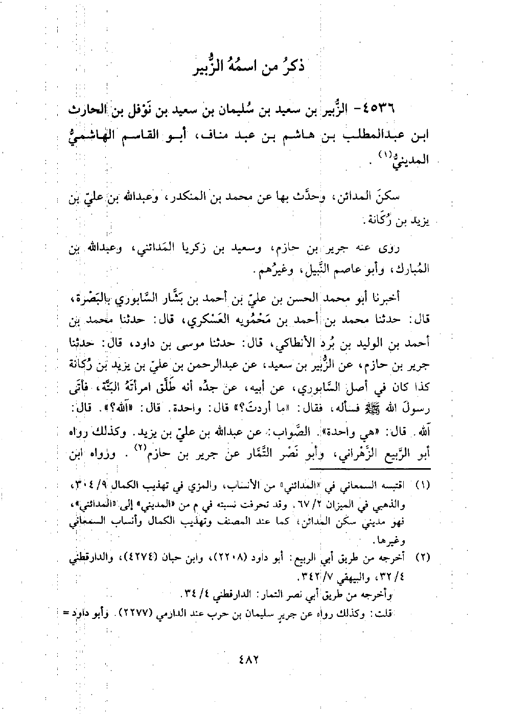 4536 - الزبير بْن سَعِيد بْن سُلَيْمَان بْن سَعِيد بْن نوفل بْن الحارث بْن عَبْد المطلب بْن هاشم بْن عَبْد مناف أَبُو الْقَاسِم الهاشمي المديني