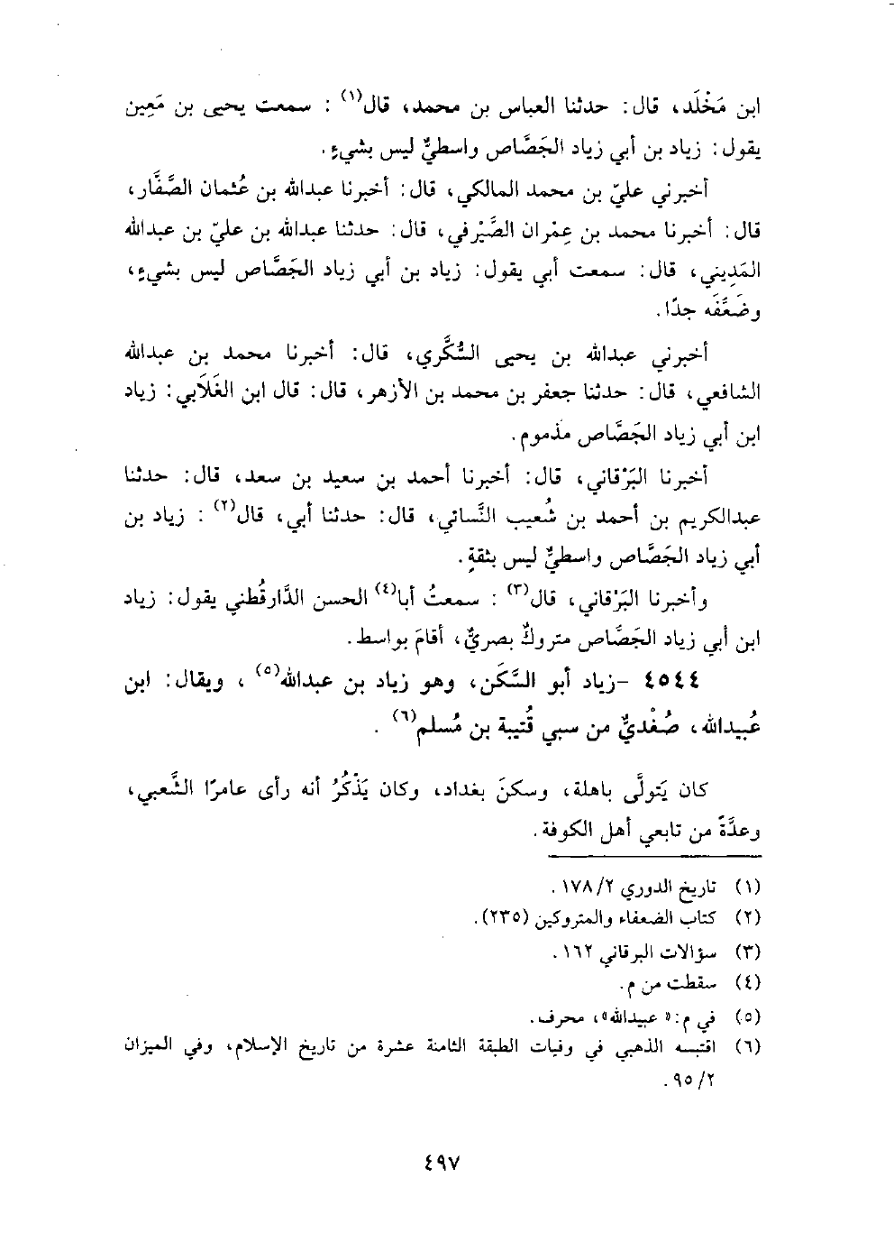 ثُمَّ أَخْبَرَنِي مُحَمَّد بْن أَحْمَد بْن مُحَمَّد العتيقي، قَالَ: أَخْبَرَنَا عُثْمَان بْن مُحَمَّد المخرمي، قَالَ: أَخْبَرَنِي الأصم أن الْعَبَّاس بْن مُحَمَّد حدثهم، قَالَ: قَالَ يَحْيَى بْن معين: أَبُو السكن كَانَ بالمخرم وَكَانَ يقول: سمعت الشعبي، وَلم يكن بشيء أَخْبَرَنَا عُبَيْد اللَّهِ بْن عُمَر، قَالَ: حَدَّثَنِي أَبِي، قَالَ: حَدَّثَنَا الْحَسَن بْن أَحْمَد، قَالَ: قرئ على الْعَبَّاس، قَالَ: سمعت يَحْيَى بْن معين، يقول: زِيَاد أَبُو السكن ليس بشيء أَخْبَرَنَا الْبَرْقَانِيّ، قَالَ: أَخْبَرَنَا أَحْمَد بْن سَعِيد بْن سَعْد، قَالَ: حَدَّثَنَا عَبْد الكريم بْن أَحْمَد بْن شعيب النسائي، قَالَ: حَدَّثَنَا أَبِي، قَالَ: زِيَاد أَبُو السكن ليس بثقة