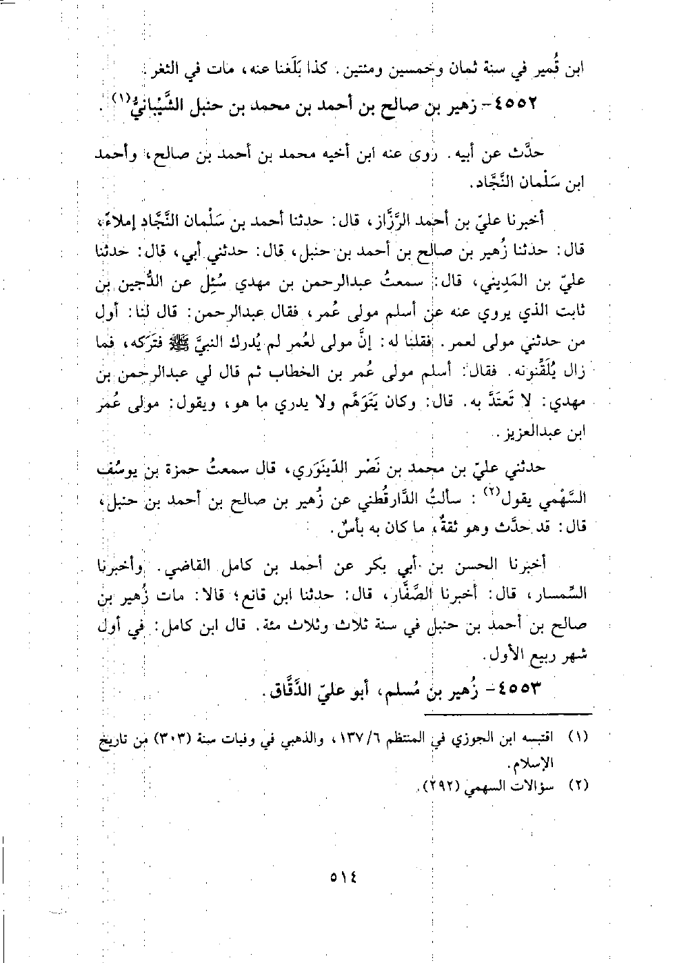 4552 - زهير بْن صالح بْن أَحْمَد بْن مُحَمَّد بْن حَنْبَل الشيباني حدث عَنْ أبيه.