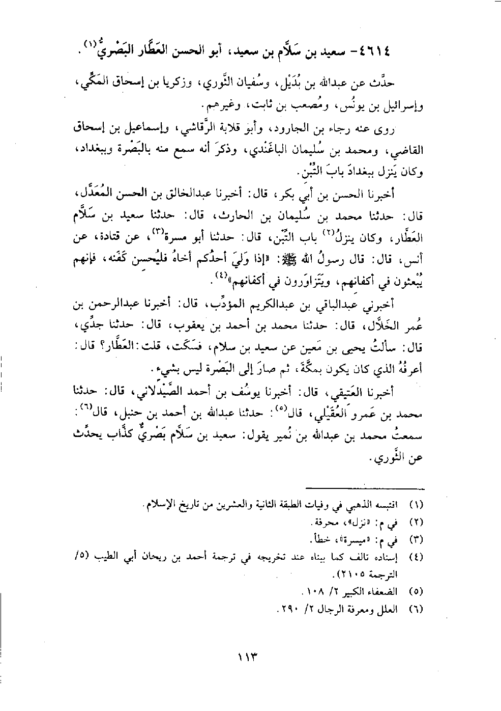 4614 - سعيد بن سلام بن سعيد أبو الحسن العطار البصري حدث عن عبد الله بن بديل، وسفيان الثوري، وزكريا بن إسحاق المكي، وإسرائيل بن يونس، ومصعب بن ثابت، وغيرهم.