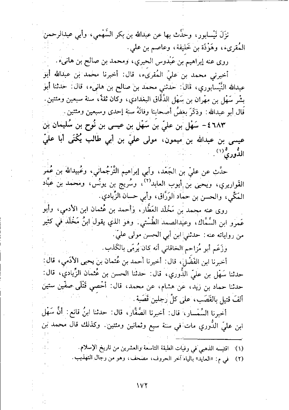 4683 - سهل بن علي بن سهل بن عيسى بن نوح بن سليمان بن عيسى بن عبد الله بن ميمون مولى علي بن أبي طالب يكنى أبا علي الدوري