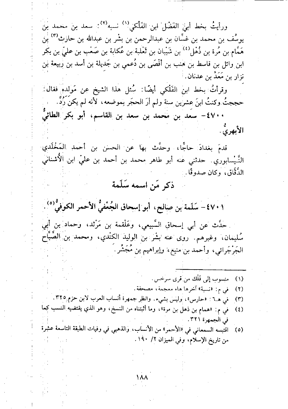 4700 - سعد بن محمد بن سعد بن القاسم أبو بكر الطائي الأبهري قدم بغداد حاجا، وحدث بها عن الحسن بن أحمد المخلدي النيسابوري.