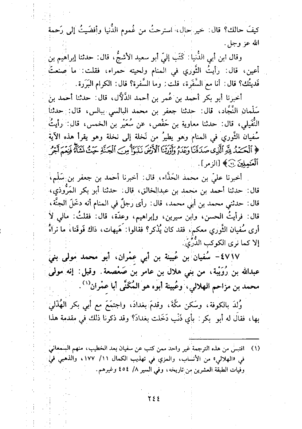 4717 - سفيان بن عيينة بن أبي عمران أبو محمد مولى بني عبد الله بن رويبة من بني هلال بن عامر بن صعصعة وقيل إنه مولى محمد بن مزاحم الهلالي وعيينة أبوه هو المكنى أبا عمران