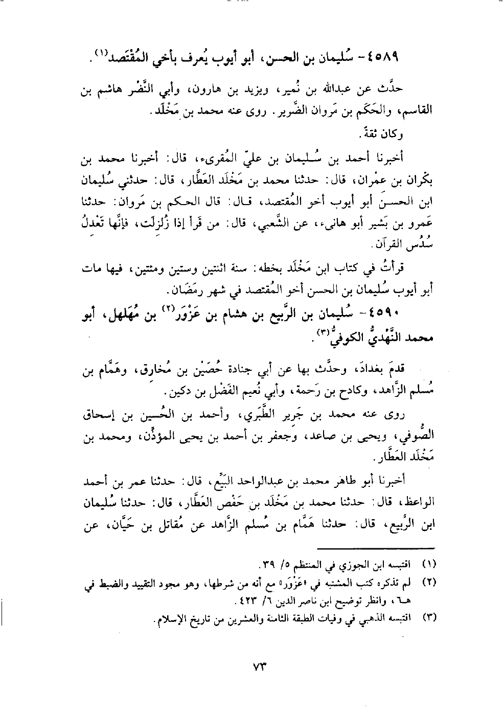 4589 - سليمان بن الحسن أبو أيوب يعرف بأخي المقتصد حدث عن عبد الله بن نمير، ويزيد بن هارون، وأبي النضر هاشم بن القاسم، والحكم بن مروان الضرير.