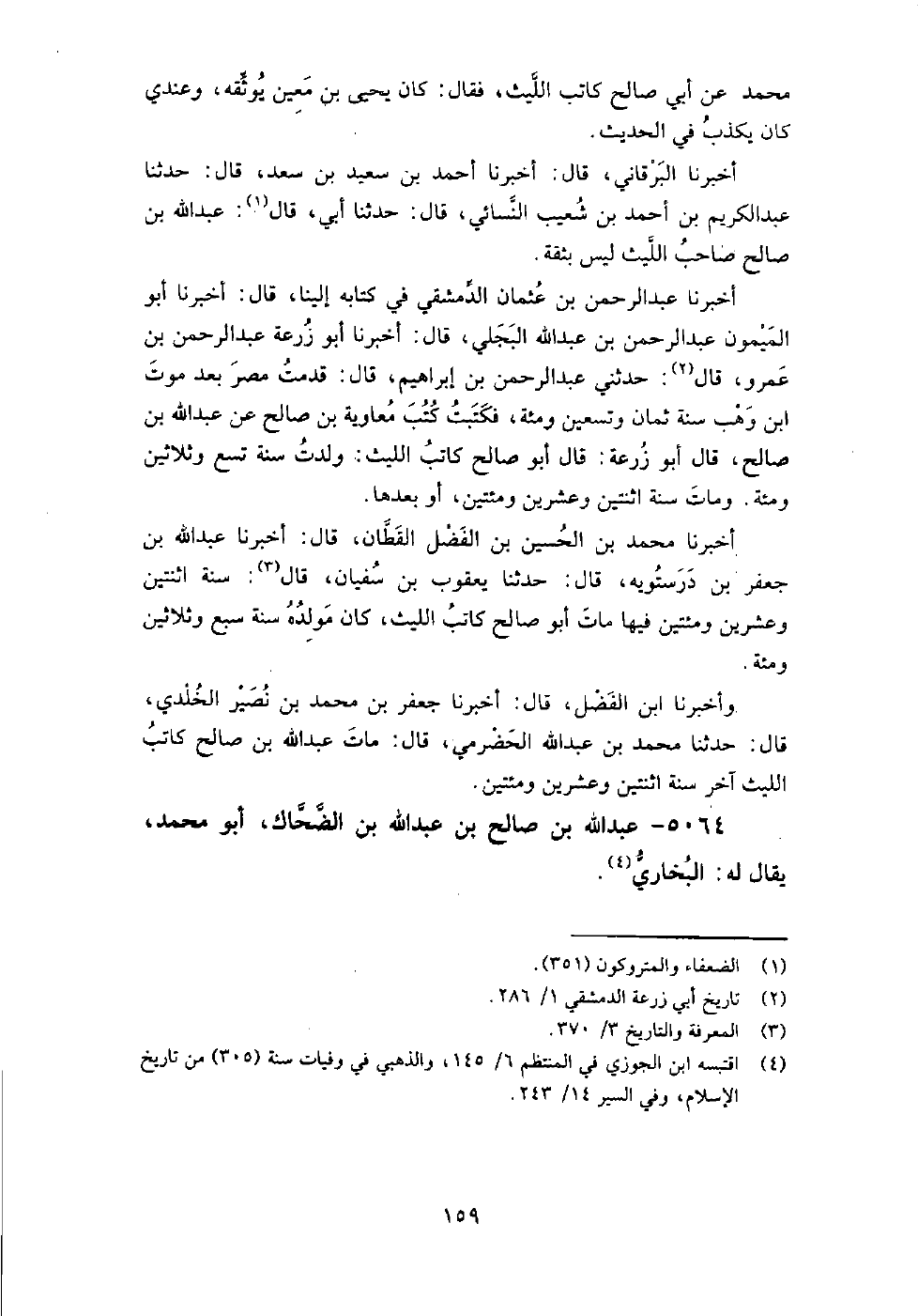 5064 - عبد اللَّه بن صالح بن عبد اللَّه بن الضحاك أبو مُحَمَّد يقَال له البخاري