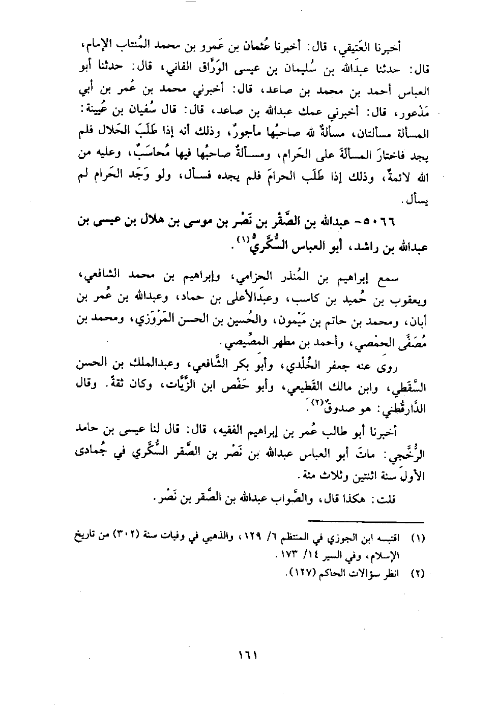 5066 - عبد اللَّه بن الصقر بن نصر بن موسى بن هلال بن عيسى بن عبد اللَّه بن راشد أبو العباس السكري سَمِعَ إِبْرَاهِيم بن المنذر الحزامي، وإِبْرَاهِيم بن مُحَمَّد الشافعي، ويعقوب بن حميد بن كاسب، وعبد الأعلى بن حماد، وعبد اللَّه بن عمر بن أبان، ومُحَمَّد بن حاتم بن ميمون، والْحُسَيْن بن الْحَسَن الْمَرْوَزِيّ، ومُحَمَّد بن مصفى الحمصي، وأَحْمَد بن مطهر المصيصي.