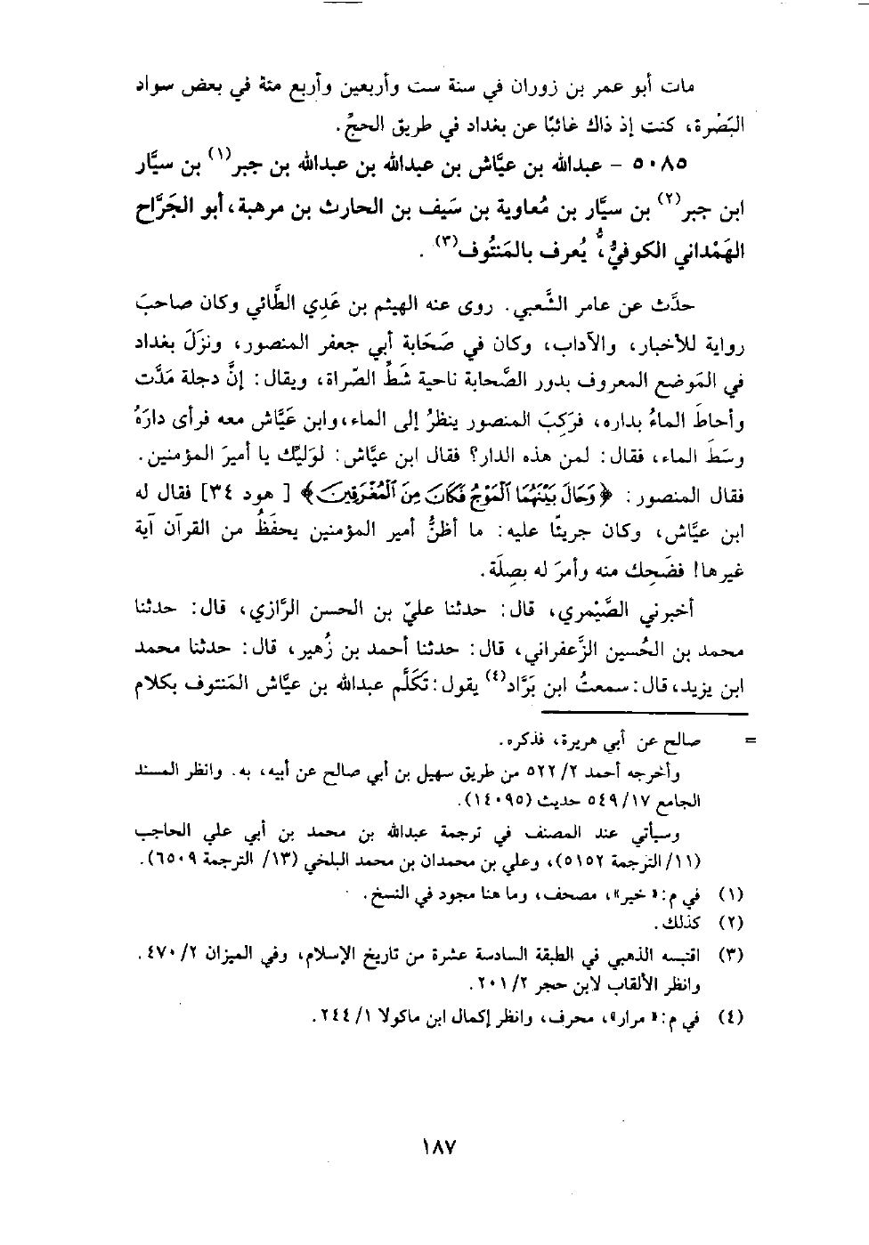 5085 - عبد اللَّه بن عياش بن عبد اللَّه بن عبد اللَّه بن جبر بن سيار بن جبر بن سيار بن معاوية بن سيف بن الحارث بن مرهبة أبو الجراح الهمداني الْكُوفِيّ يعرف بالمنتوف