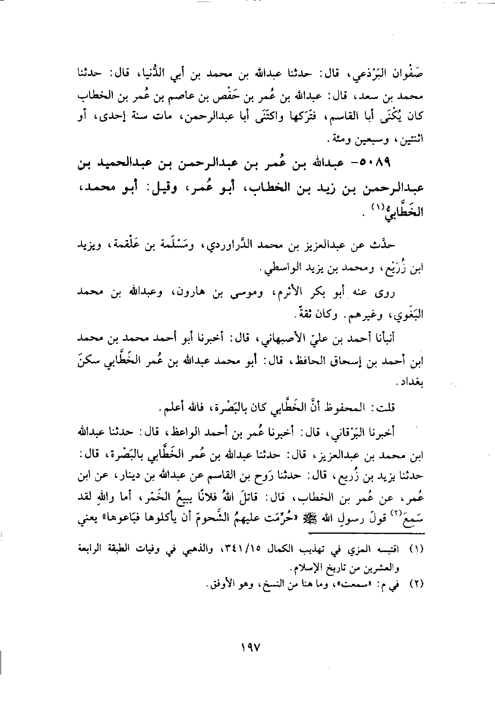 5089 - عبد اللَّه بن عمر بن عبد الرحمن بن عبد الحميد بن عبد الرحمن بن زيد بن الخطاب أبو عمر، وقيل: أبو مُحَمَّد الخطابي