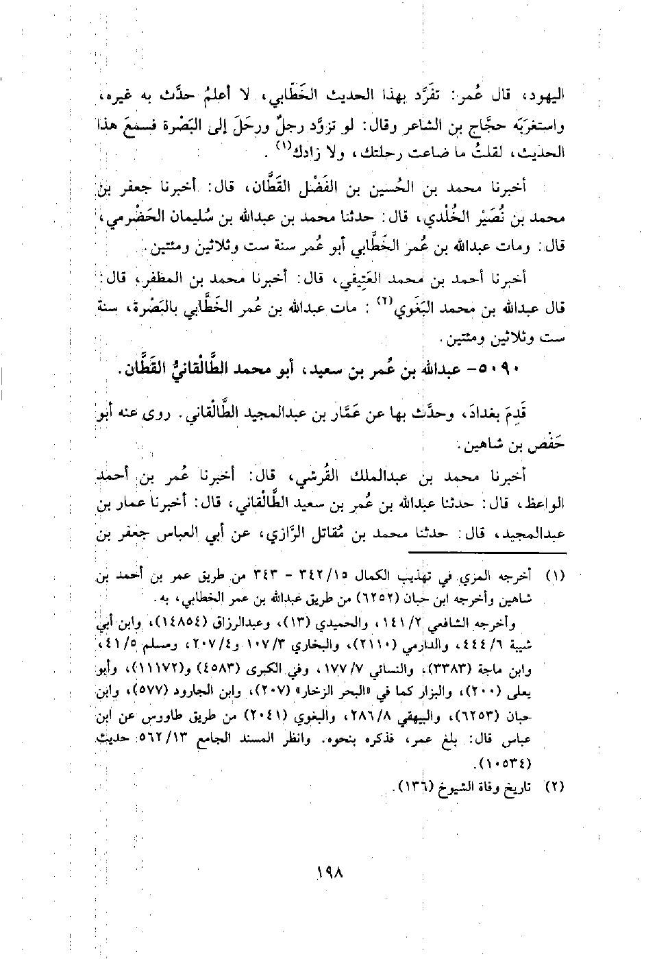 5090 - عبد اللَّه بن عمر بن سعيد، أبو مُحَمَّد الطالقاني القطان قدم بغداد، وحدث بِها عن عمار بن عبد المجيد الطالقاني.