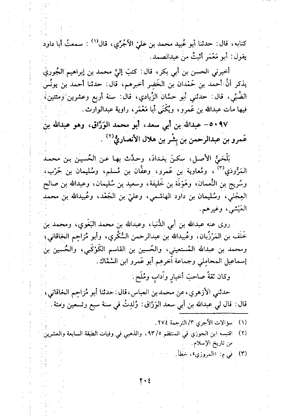 5097 - عبد اللَّه بن أَبِي سعد أبو مُحَمَّد الوراق وهو عبد اللَّه بن عمرو بن عبد الرحمن بن بشر بن هلال الْأَنْصَارِيّ