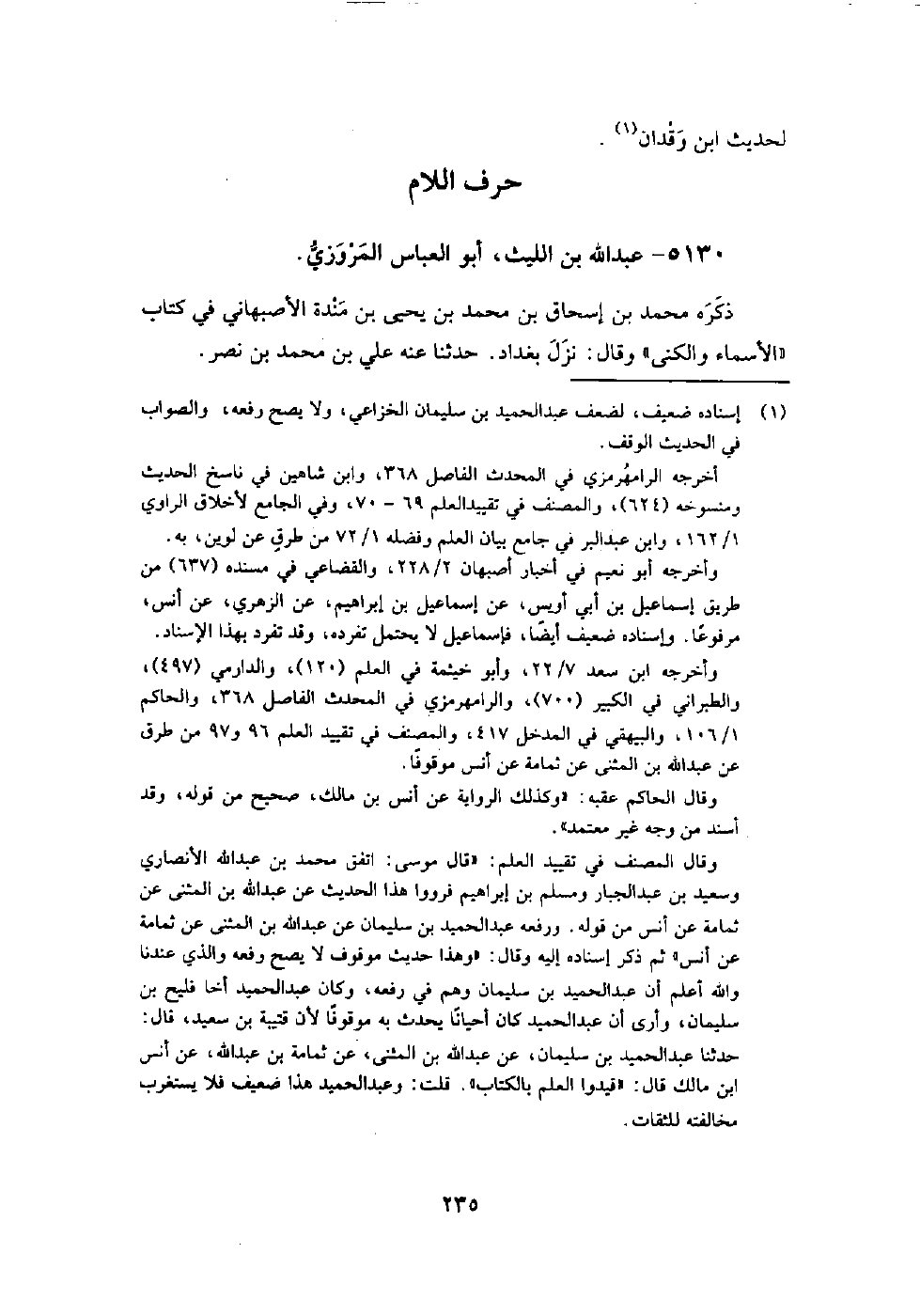 5130 - عبد اللَّه بن الليث أبو العباس الْمَرْوَزِيّ ذكره مُحَمَّد بن إسحاق بن مُحَمَّد بن يَحْيَى بن منده الأصبهاني في كتاب الأسماء والكنى، وقَالَ: نزل بغداد.