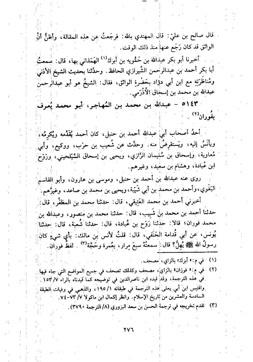 5143 - عبد اللَّه بن مُحَمَّد بن المهاجر أبو مُحَمَّد يعرف بفوران