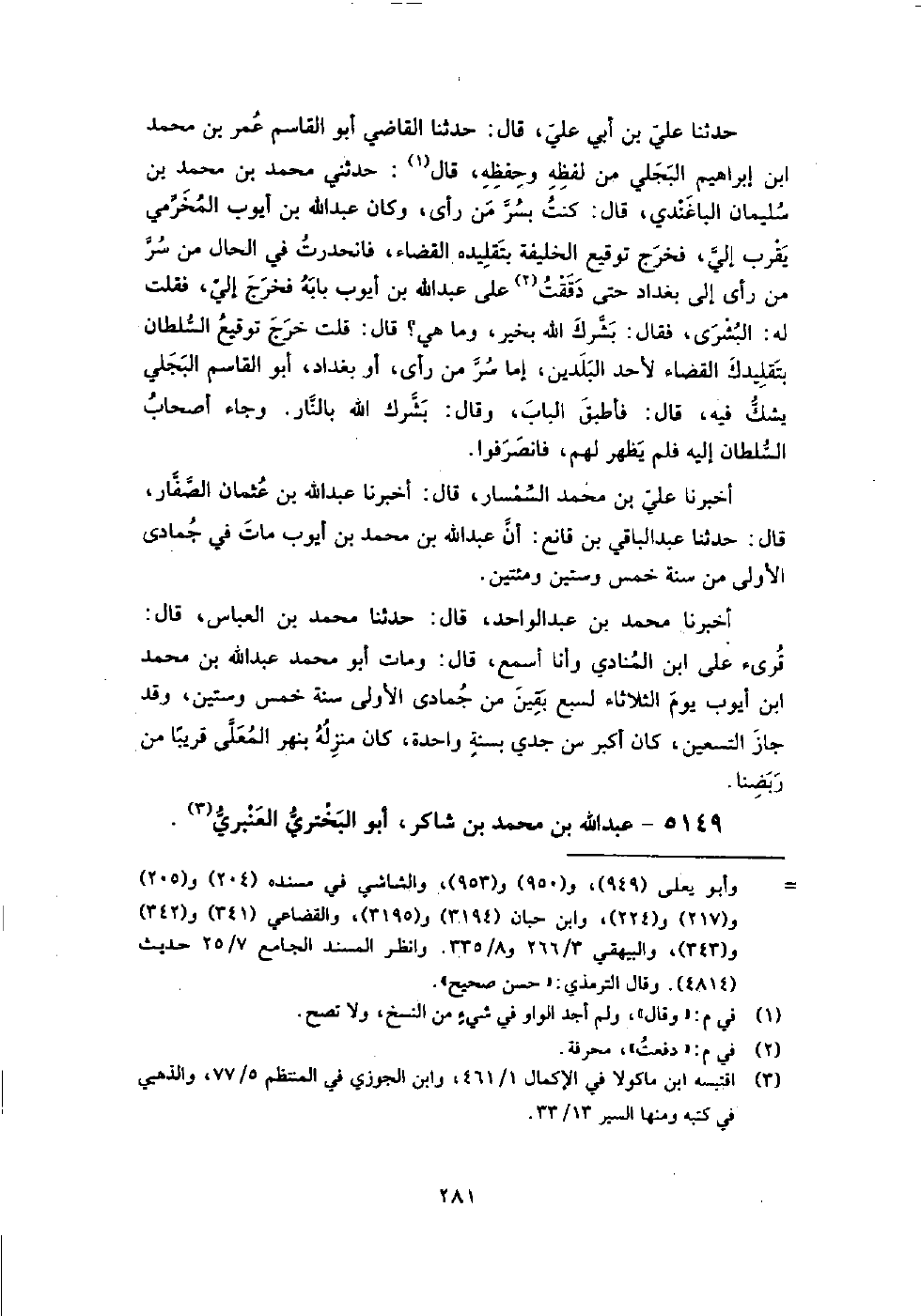 5149 - عبد اللَّه بن مُحَمَّد بن شاكر أبو البخترى العنبري