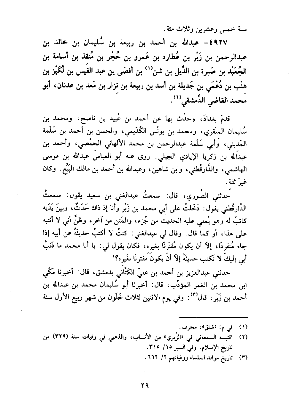 4927 - عبد الله بن أَحْمَد بن ربيعة بن سليمان بن خالد بن عبد الرحمن بن زبر بن عطارد بن عمرو بن حجر بن منقذ بن أسامة بن الجعيد بن صبرة بن الديل بن شن بن أفصى بن عبد قيس بن لكيز بن هنب بن دعمي بن جديلة بن أسد بن ربيعة بن نزار بن معد بن عدنان، أبو مُحَمَّد القاضي الدمشقي