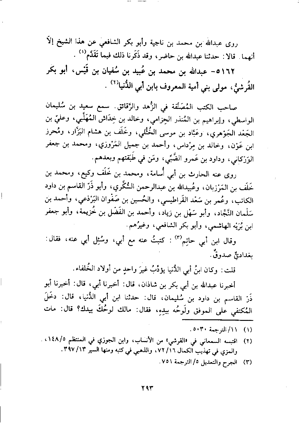 5162 - عبد اللَّه بن مُحَمَّد بن عبيد بن سفيان بن قيس، أبو بكر القرشي مولى بني أمية المعروف بابن أبي الدنيا