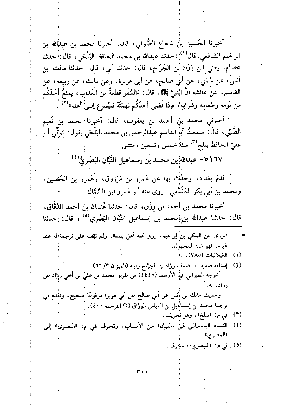 5167 - عبد اللَّه بن مُحَمَّد بن إِسْمَاعِيل التبان البصري قدم بغداد، وحدث بِها عن عمرو بن مرزوق، وعمرو بن الحصين، ومُحَمَّد بن أبي بكر المقدمي.