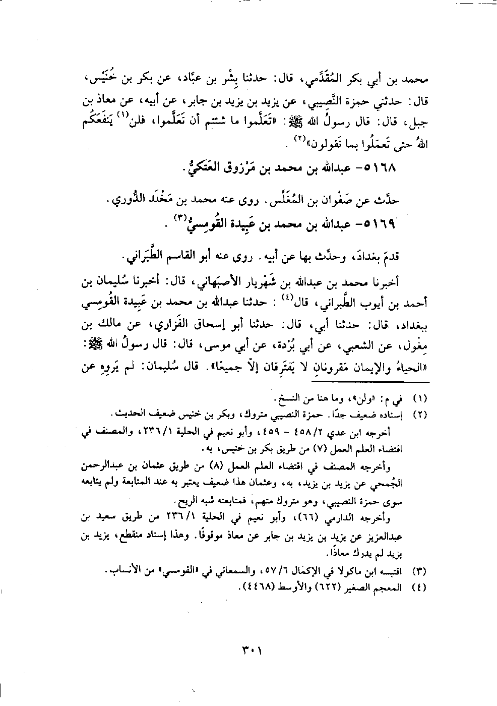 5169 - عبد اللَّه بن مُحَمَّد بن عبيدة القومسي قدم بغداد، وحدث بِها عَنْ أَبِيهِ.
