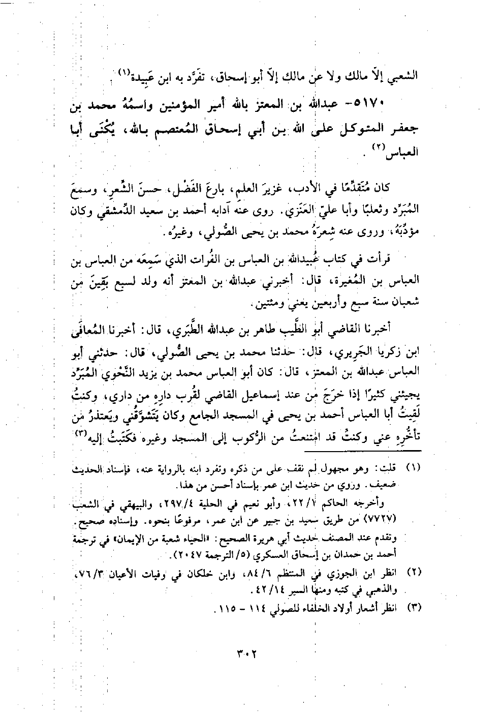 5170 - عبد اللَّه بن المعتز باللَّه أمير المؤمنين واسمه مُحَمَّد بن جعفر المتوكل على اللَّه بن أَبِي إسحاق المعتصم باللَّه يكنى أبا العباس