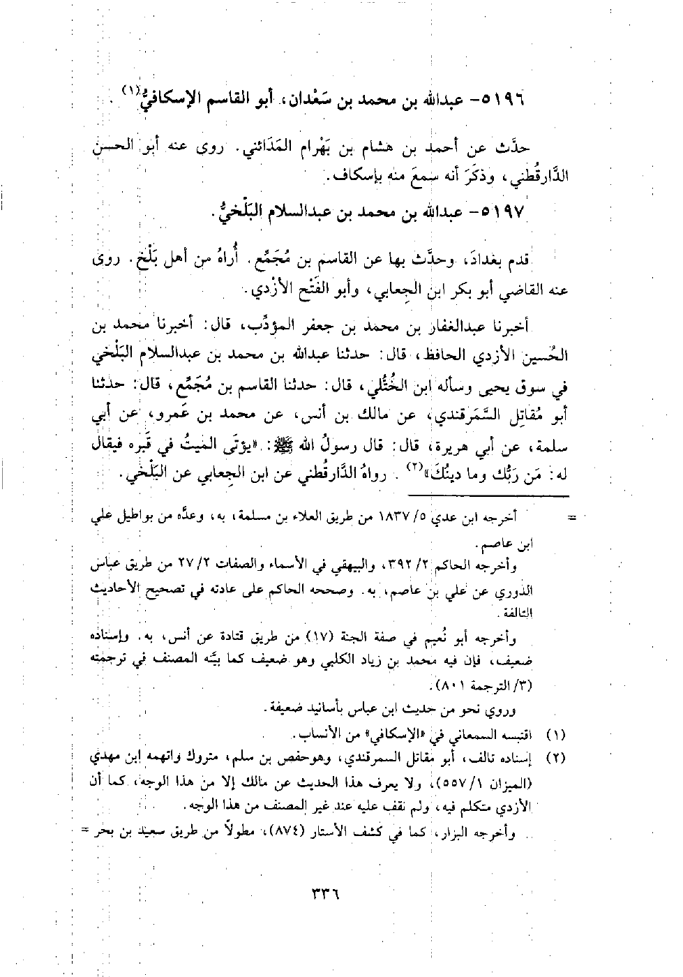 5197 - عبد اللَّه بن مُحَمَّد بن عبد السلام البلخي قدم بغداد، وحدث بِها عن القاسم بن مجمع.