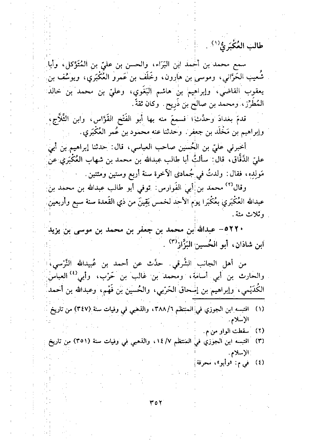 5220 - عبد اللَّه بن مُحَمَّد بن جعفر بن مُحَمَّد بن موسى بن يزيد بن شاذان أبو الْحُسَيْن البزاز من أهل الجانب الشرقي.