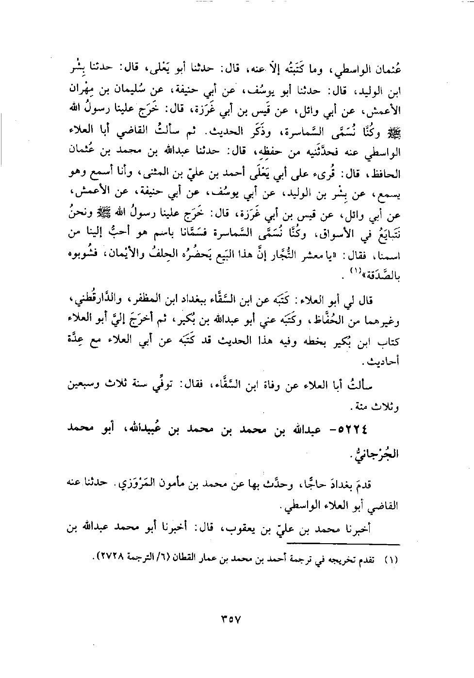 5224 - عبد اللَّه بن مُحَمَّد بن مُحَمَّد بن عبيد اللَّه أبو مُحَمَّد الجرجاني قدم بغداد حاجًا، وحدث بِها عن مُحَمَّد بن مأمون الْمَرْوَزِيّ.