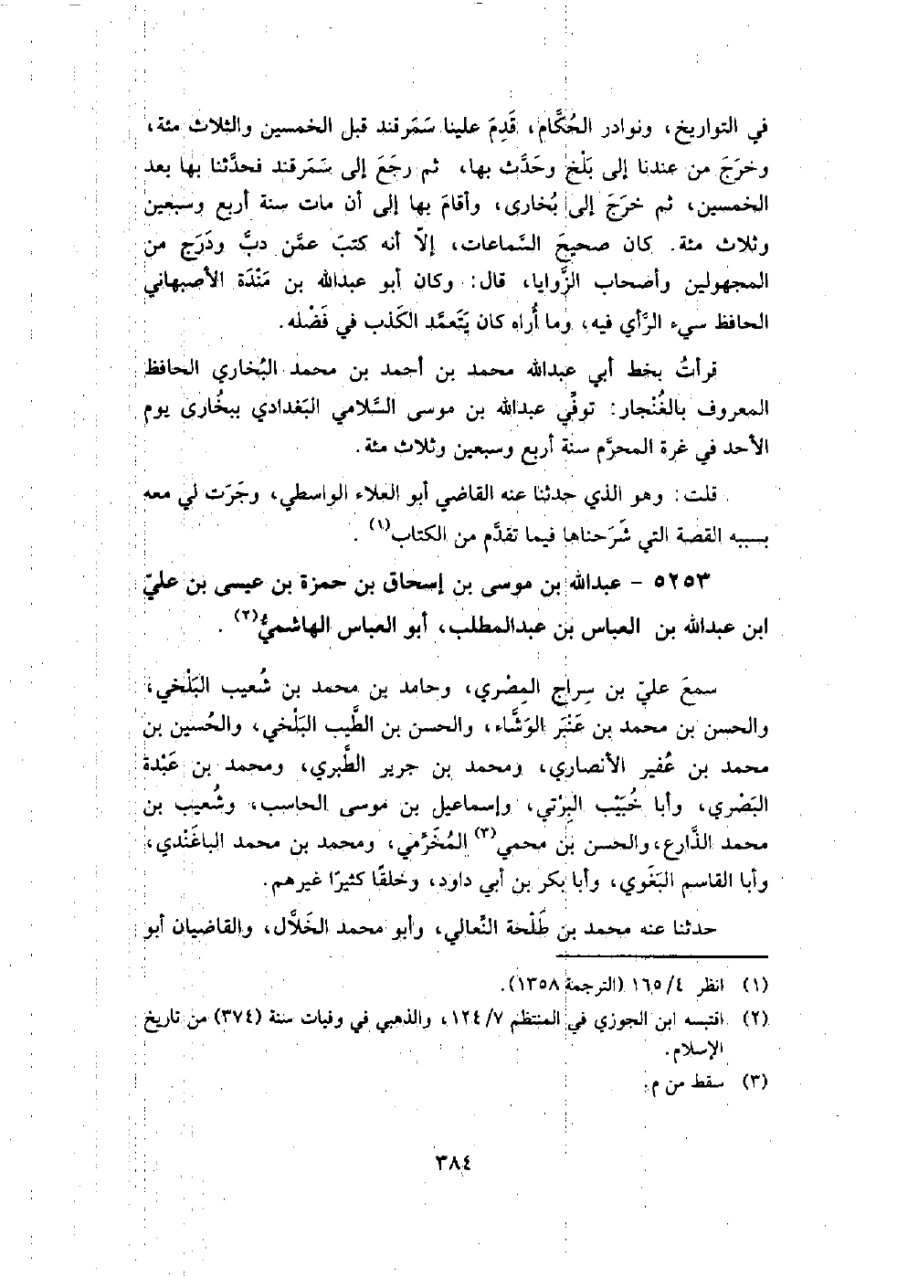 5253 - عبد اللَّه بن موسى بن إسحاق بن حمزة بن عيسى بن علي بن عبد اللَّه بن العباس بن عبد المطلب أبو العباس الهاشمي سَمع علي بن سراج الْمصْرِيّ، وحامد بن مُحَمَّد بن شعيب البلخي، والْحَسَن بن مُحَمَّد بن عنبر الوشاء، والْحَسَن بن الطيب البلخي، والْحُسَيْن بن مُحَمَّد بن عفير الْأَنْصَارِيّ، ومُحَمَّد بن جرير الطبري، ومُحَمَّد بن عبدة البصري، وأبا خبيب البرتي، وإِسْمَاعِيل بن موسى الحاسب، وشعيب بن مُحَمَّد الذارع، والْحَسَن بن محمي المخرمي، ومُحَمَّد بن مُحَمَّد الباغندي، وأبا القاسم البغوي، وأبا بكر بن أَبِي داود، وخلقًا كثيرًا غيرهم.
