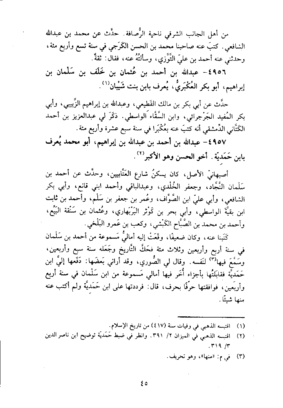 4957 - عبد اللَّه بن أَحْمَد بن عبد اللَّه بْنُ إِبْرَاهِيمَ، أبو مُحَمَّد يعرف بابن حمدية أخو الْحَسَن وهو الأكبر.