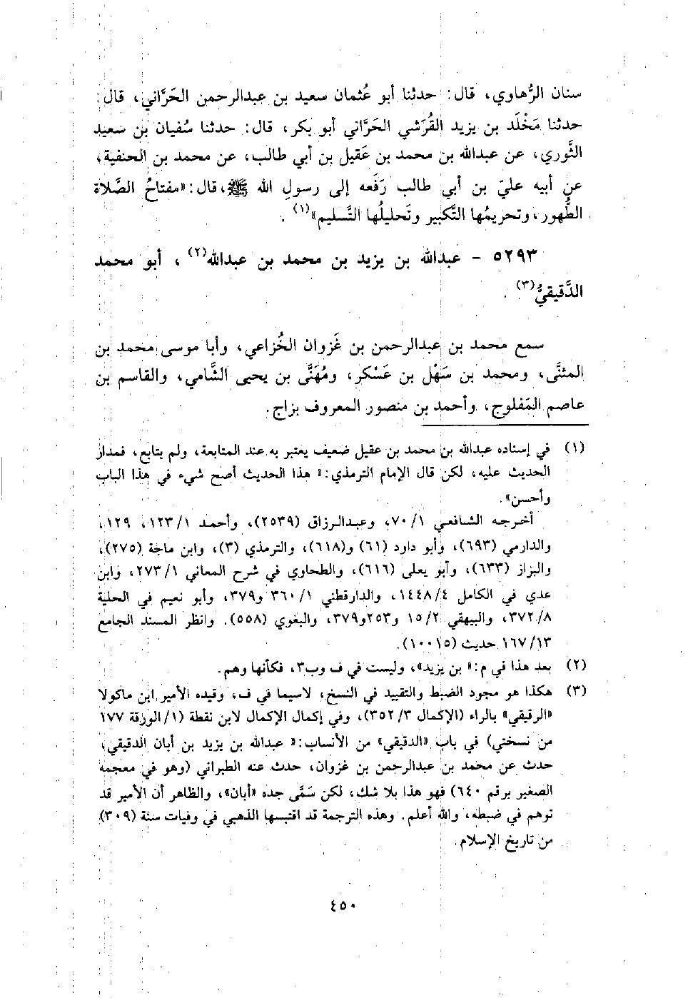 5293 - عبد اللَّه بن يزيد بن مُحَمَّد بن عبد اللَّه أَبُو مُحَمَّدٍ الدقيقي سمع مُحَمَّد بن عبد الرحمن بن غزوان الْخُزَاعِيّ، وأبا موسى مُحَمَّد بن المثنى، ومُحَمَّد بن سهل بن عسكر، ومهنى بن يَحْيَى الشامي، والقاسم بن عاصم المفلوج، وأَحْمَد بن منصور، المعروف بزاج.