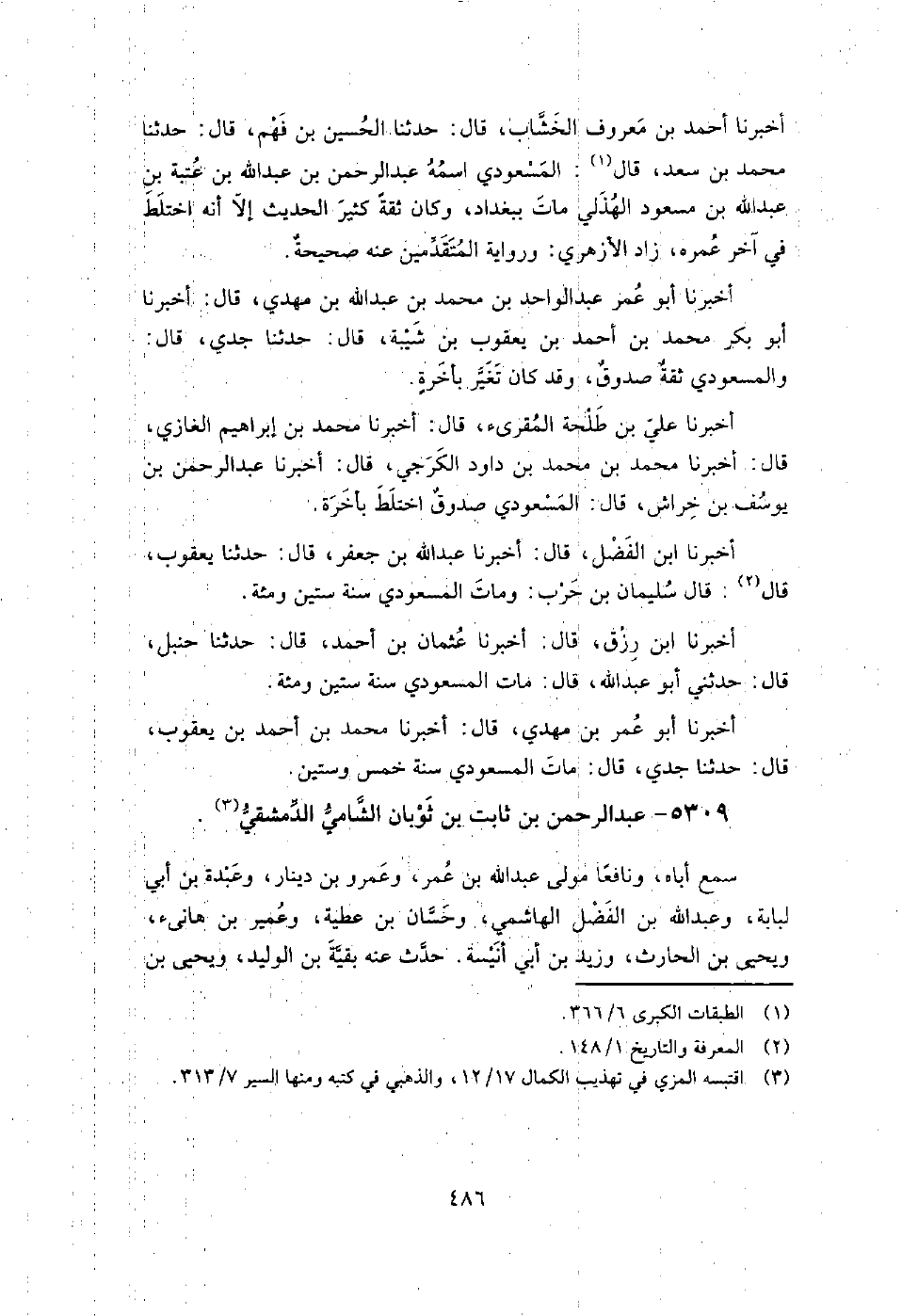5309 - عبد الرحمن بن ثابت بن ثوبان الشامي الدمشقي سمع أباه، ونافعًا مولى عبد اللَّه بن عمر، وعمرو بن دينار، وعبدة بن أبي لبابة، وعبد اللَّه بن الفضل الهاشمي، وحسان بن عطية، وعمير بن هانئ، ويَحْيَى بن الحارث، وزيد بن أبي أنيسة حدث عنه بقية بن الوليد، ويَحْيَى بن حمزة الدمشقي، والوليد بن مسلم، ومُحَمَّد بن يوسف الفريابي، وعلي بن عياش الحمصي.